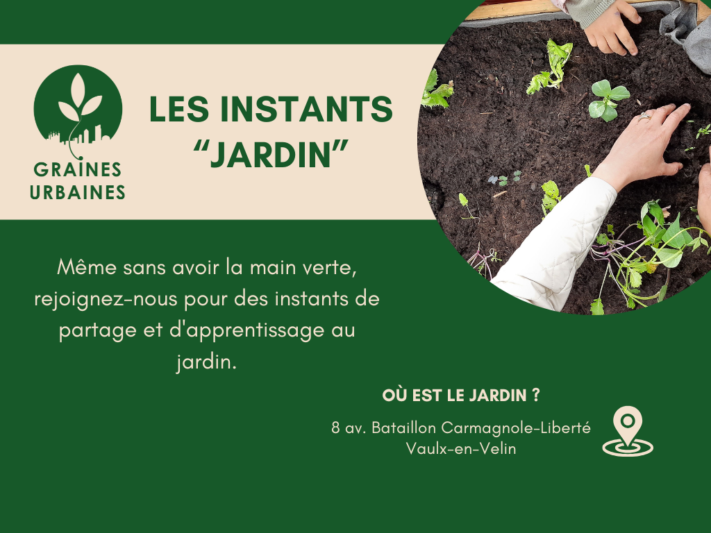 Les « Instants Jardin » sont des créneaux pendant lesquels le jardin est ouvert à tous.tes et où nous jardinons ensemble. Ce sont des moments collectifs de partage, de découverte et d’apprentissage. Pour participer, il n’y a pas besoin de s’inscrire, ni d’avoir des compétences particulières ou matériel spécifique. Il te faut juste une tenue adaptée à la météo, et de la motivation !