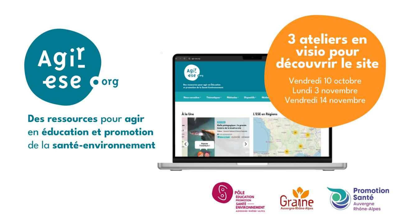 Agir-ese.org est un site ressource pour outiller les acteurs dans leurs actions d'éducation et de promotion de la santé-environnement (ESE),co-animé par des binômes GRAINE (et leurs associations membres) et Promotion Santé en Auvergne-Rhône-Alpes et Occitanie. Il vise à fournir des ressources sur des thématiques en ESE, proposer des repères pédagogiques et valoriser les événements et acteurs ESE.