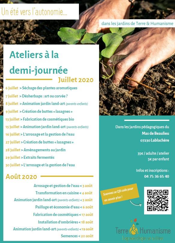 L'association Terre & Humanisme propose quotidiennement pendant les mois de juillet et août 2020, des ateliers à la demi-journée sur diverses thématiques en lien avec l'agroécologie.